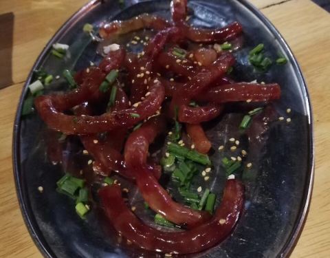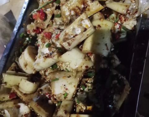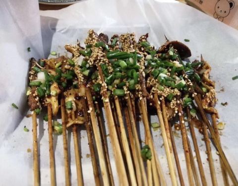 烤的素菜也挺不错:烤藕片,10元一份,藕切的很薄,烤起来很入味,吃到嘴里脆脆的
