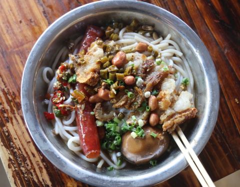 以其独特的风味远近闻名。其做工考究,先将上好的早籼米磨成浆,装袋滤干,揣成粉团煮熟后压榨成圆根或片状即成。圆的称米粉,片状的称切粉,通称米粉,其特点是洁白、细嫩、软滑、爽口。其吃法多样。制作最最讲...以其独特的风味远近闻名。其做工考究,先将上好的早籼米磨成浆,装袋滤干,揣成粉团煮熟后压榨成圆根或片状即成。圆的称米粉,片状的称切粉,通称米粉,其特点是洁白、细嫩、软滑、爽口。其吃法多样。制作最最讲究卤水的制作,其工艺各家有异,大致以猪、牛骨、罗汉果和各式佐料熬煮而成,香味浓郁。卤水的用料和做法不同,米粉的风味也不同。大致有生菜粉、牛腩粉、三鲜粉、原汤粉、卤菜粉、酸辣粉、马肉米粉、担子米粉等。