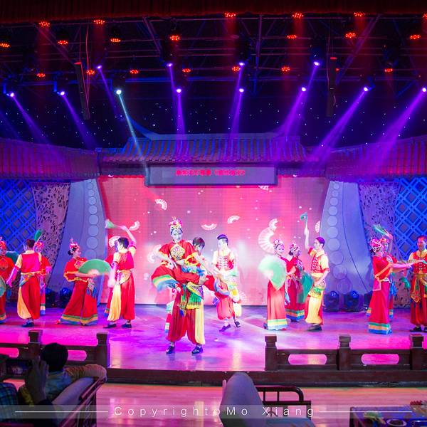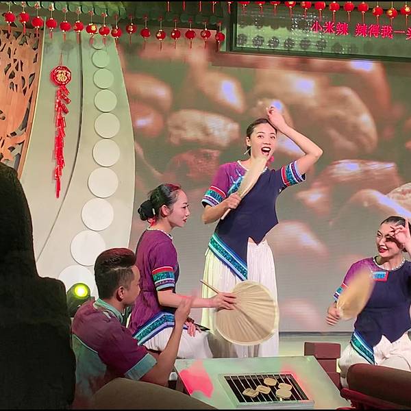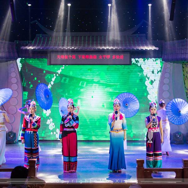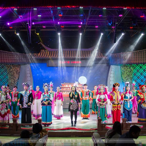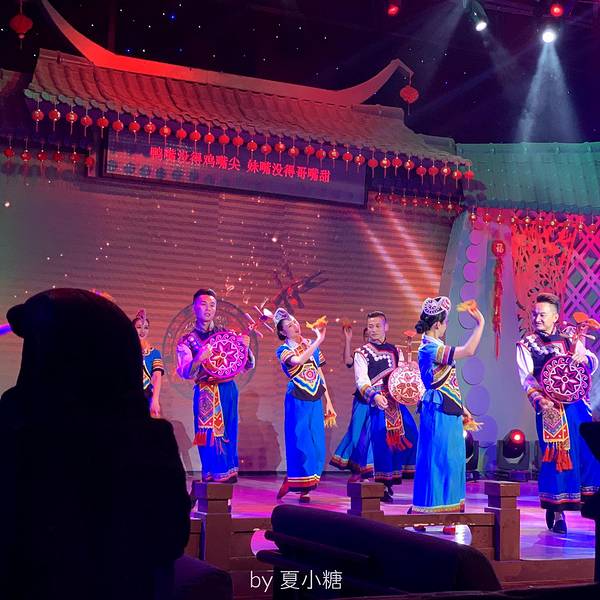 来到建水还有一个不可错过的表演就是本地的建水小调,金临安茶苑每天晚上都会上演精彩的建水小调,这里也是外来游客了解建水文化最好的地方。建水小调是产生于建水特定历史背景的小调,是彝汉文化融合的节晶。曲体结构与汉族小调保持渊源联系,音调则散发着浓郁的地域特色。内容广泛,涵盖爱情、婚姻、风俗及痛苦、辛酸、愿望。在建水小调中,还有不少曲目在全国乃至世界的各类音乐比赛中获奖。例如滇南彝族四大腔的《沙莜腔》《海菜腔》《五三腔》《四腔》,《西乡坝子一窝雀》《青菜青》《小妹花》《编花调》等。表演中间还会和观众热情的互动起来,看看我们来自丽江的老司机薛科长,从容的面对采访。表演中少数民族的文化其实更多一些,虽然对这些有的歌唱表演内容不是特别的清楚,但是精湛的舞姿,及动情的表演也让我们这些外乡人更加动容。看看我们的皓柯,薛科长,小巴黎甩着手鼓,脸上的笑容乐开了花。90分钟的表演虽然不能完全的表演出建水彝族,哈尼族的生活故事,但是也让我们看到了建水人的面对生活的态度。回到酒店脑海里一直呈现着他们歌声与舞蹈,这也让我对云南多民族的地方更加喜爱。