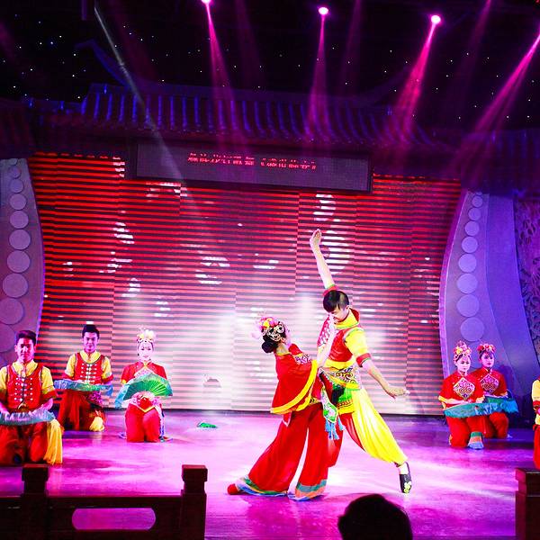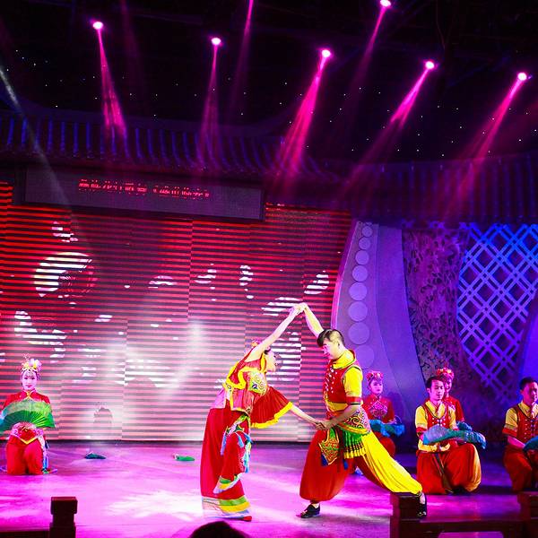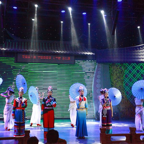 走走停停,直到夜幕降临,灯光打在石板路,泛起暖黄色的光晕。 学政考棚对面有阵阵歌声传来,是当地特色的 建水 小调演出,90块钱就能坐在好位置,当然要听。 建水 小调是彝族和汉族互相影响形成的文化结晶,小调高亢明亮,听着心情愉悦。越看越入迷,演员唱跳很是卖力,表现力也惊人,是我此行看过印象最深的一场民俗表演。而且感染力还极强,第二天早上起来,我哼的都是 建水 小调,时不时还冒出两句 建水 方言,一直循环到 西双版纳 ,都停不下来。 有这么强大的传播力,是因为它唱的全是日常劳作和生活点滴:田间采摘、花灯、庙会、 建水 方言还有当地小吃,毫无 阳春 白雪,他们将 建水 最生活化的一面化作歌声和舞姿, 是真正的艺术源于生活。【推荐指数】:★★★★ 【小糖Tips】:晚上20:30开始,22:00结束,可以网上买票,不过现场买也就贵10块钱