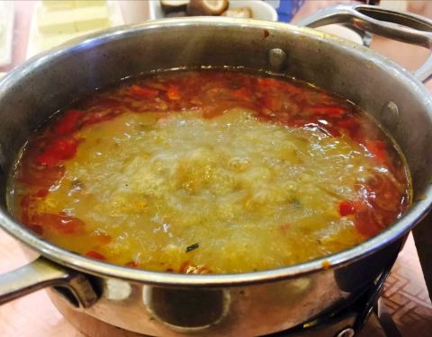 锅底较凸出的是番茄锅,味道很好,食材也算多样