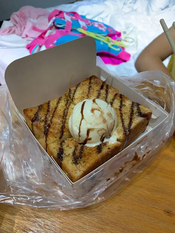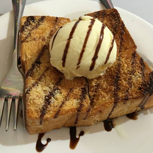 - 主打就是厚土司,点了香草冰淇淋厚土司,吐司是现烤的口感松脆可口,热的吐司和冰的冰淇淋的搭配很好吃实用