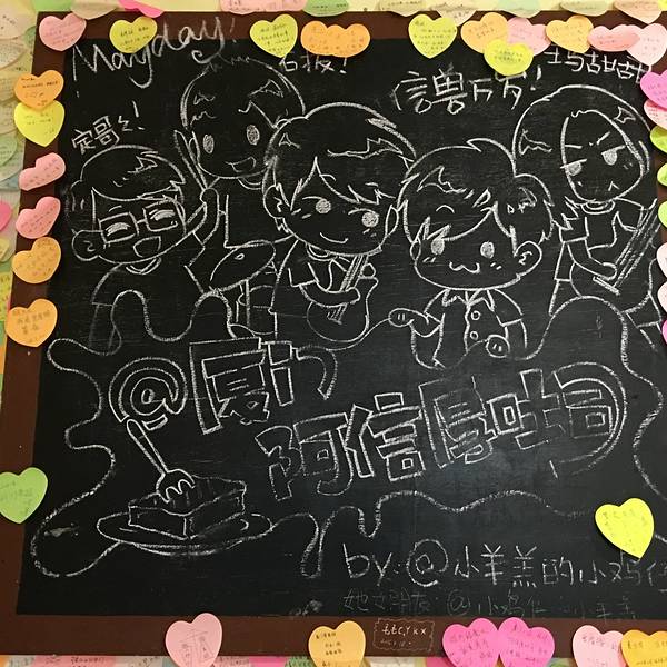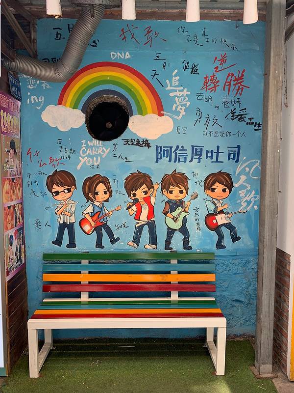曾厝安有家阿信厚吐司,本来以为只是名字相同不过,想不到是家围绕五月天衍生的小店,可能店主也是个五迷吧,走到门口就看到五月天的漫画了,装修全部和五月天相关,亲切又激动,作为五迷必须打卡签到,循环播放...