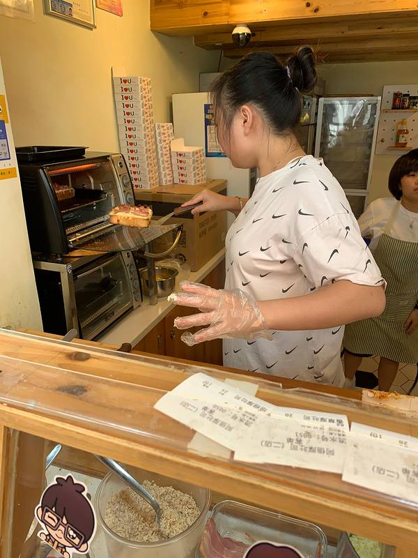 看店名就知道这家店主营的是吐司,店内的墙上画着五月天的Q版卡通形象,放的是五月天的音乐,连老板本人长...