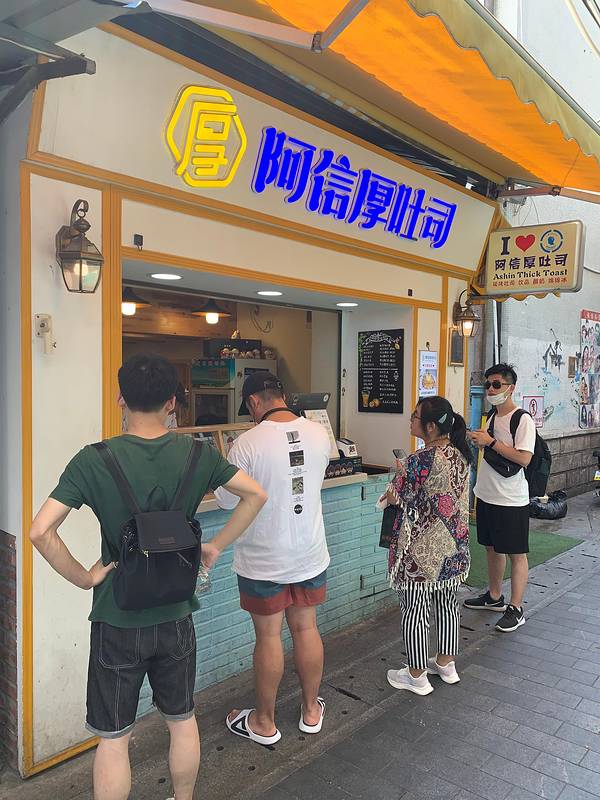 阿信后吐司啊,在这个厦门地区的叫王红美食排行榜上拍的还是很靠前的,嗯,但这个去的时候啊,看到的人流量确实非常的高,嗯,价格呢其实也不便宜。