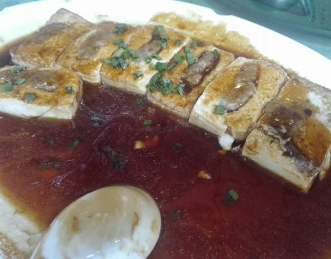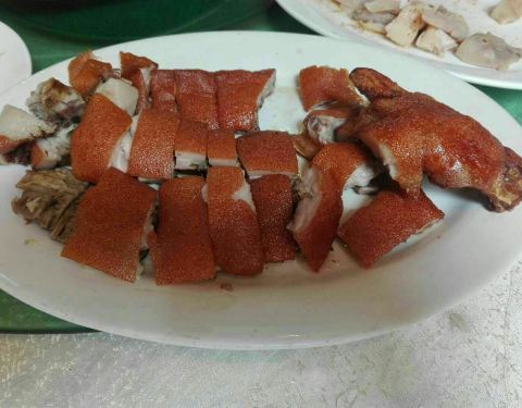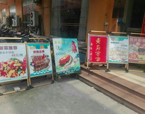 这家酒店其实是吃饭的餐馆,并没有住宿的客房,在广州城郊地方,以本地粤菜为主,餐馆面积挺大的,一楼大厅,二楼包房、还有宴会厅,在这一带算是比较好的一家了。宴请聚餐,婚嫁摆酒,很多人都选在这里。这次清明节期间我们回乡祭祖,就选在这里一众亲友聚一聚。 我们祭祖的“|烧鹅^”就是在这里订的,一只268元,另外还有一只“乳猪”,祭扫完也带来这里加工上桌做菜,他们收加工费30元,所以点菜我们就不用点太多了,看到门口的“天天特价菜”牌,就点了一个“|茶皇焗海虾^”38元,蛮划算的;“|脆皮鸡^”半只45元,有鸡味,做得不错;其它几个菜也还可以,最后他们还送了一碟包子,埋单300+,性价比还是挺高的,消费满三百还赠送“卡拉OK”娱乐,乡下地方就是好吃好玩哈~