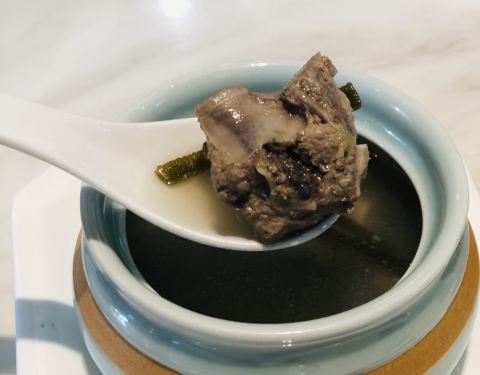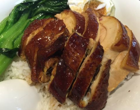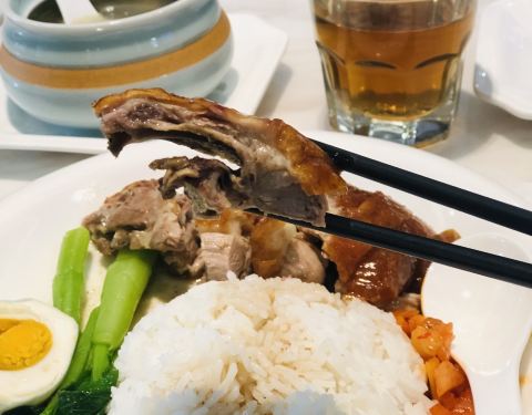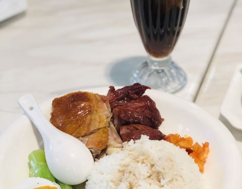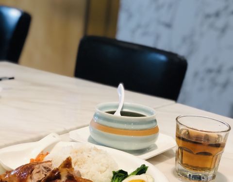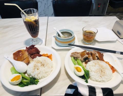 店里的地面有待好好清洁一下,又粘又滑,不好走路,服务态度蛮好的,套餐里的奶茶售完了,可以换例汤或软饮,这个更好啊,晚上喝奶茶,真的睡不着; 两人食,又团了份双拼饭,就是烧鸭拼叉烧,鸭子看着不肥,肉质还是不错的,咸蛋、酱菜一起吃,特别下饭; 例汤很有料,好几块肉排还有海带,汤头不是放了很多味精的那种,一碗下去很有营养!