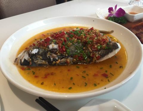 - 「清蒸鲈鱼」鲈鱼是河鱼,所以不是很大,但肉质很棒有嚼劲。2楼的环境更好,view也更甚一筹哦