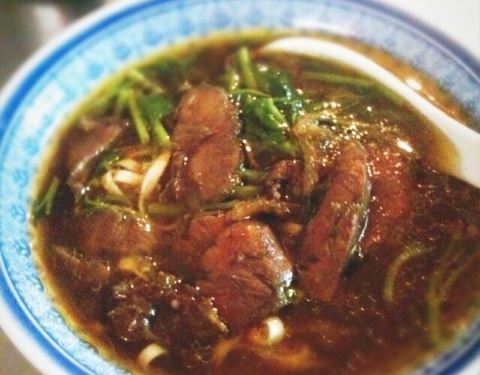 - 感觉深色的那碗要好吃一些。在台北必吃的就是永康牛肉面。一样的要排队,不过也因为下雨,人不是很多