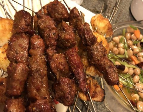 ...对,烤牛肉串竟然是卤过的酸甜口的还嚼不烂,每个肉串都不对味,疙瘩汤就是面糊糊加一点盐和几叶青菜