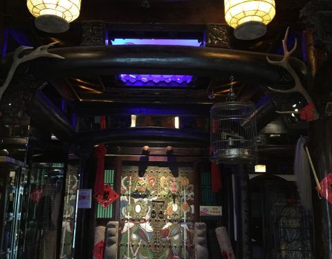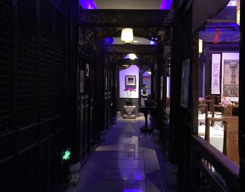 装修很有特色,一副古色古香的样子,服务员的打扮也很有古韵,团购去的,要不也不不会去了,因为太贵了,那个羊肉很好吃,原价好像100多,够吃个羊腿了,还吃了酸菜炖鹅,土豆泥,西生菜还给了几个冻秋梨,2碗米饭,算是吃饱了。炖酸菜有点油,羊肉最好吃,就是量小,土豆泥和西生菜中规中矩的。 服务还是非常好的,还给介绍了店内的古董,拍了张照片,当参观一次博物馆还行,吃饭下次还是免了,太贵了。第二天还有回访,问味道怎么样之类的。服务还是一流的。