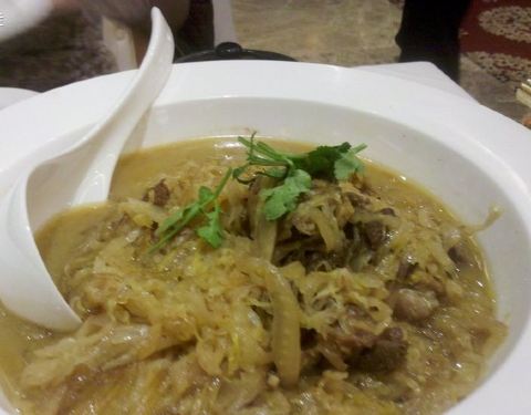 - 那个羊肉很好吃,原价好像100多,够吃个羊腿了,还吃了酸菜炖鹅,土豆泥,西生菜还给了几个冻秋梨...