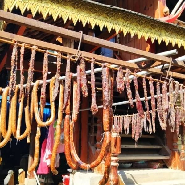 刚好在住的酒店附近,懒得再跑远就来试了下,还不错。 餐厅的建筑很有傣家特色,小竹楼来着。院子里还挂了好多腊肉。屋里四面通风,还蛮阴凉。那个清汤鱼虽然跟想象中不一样,但是味道还是很好的。他们家菜量普遍不少,根本吃不完。最后友情提示,不要轻易点剁生那些傣家特色菜,味道绝对出乎意料!! !