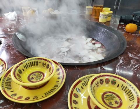 需要提前预定,大铁锅各种食材一 锅烩,味道却出奇的美味