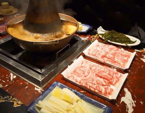 福聚全一家在厦门已有20个年头的东北铜火锅,最近推出了的东北大 铁锅,有多种口味,口味多样,有清炖羊肉、炖草鱼、炖羊排、小鸡 炖榛蘑、炖大马哈鱼等八种口味。需要提前预定,大铁锅各种食材一 锅烩,味道却出奇的美味。选择了清炖羊肉,这咕嘟嘟冒着烟气的大 铁锅,里面装的可是整整四斤羔羊肉啊。先喝汤,记得要加入特调的 山东红葱头末、姜末、香菜末,那汤简直了,红皮萝卜炖得软烂,入 味,再吃上一口羊肉,没有什么膻味,肉又很嫩,玉米面锅贴现场贴 在锅边,简直太好玩,铁锅盖上闷上一会儿即可食用,热腾腾的挺好 吃的,吃完了这些还可以涮一涮火锅,真的很棒,吃吃菜吃吃肉很是 惬意,对了,他们家的大水饺也是很棒,特别有东北的味道。