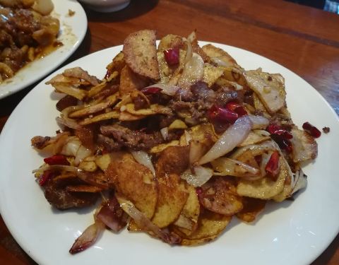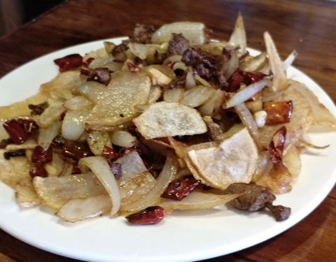 - 一到这里老板就非常热情的招呼我们,餐厅在古镇的新街。招牌菜干烧土豆牛肉做得很好,土豆炸得刚到好处