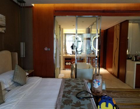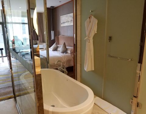 第一次来南充。不知道咋个选酒店,还是定连锁的觉得靠谱些。酒店大堂比较大气,房间装修的比较不错,床很大,房间面积也不错,还有个阳台可以坐到喝个茶和朋友聊聊天。房间的浴缸小朋友很喜欢,然后有独立的洗浴...