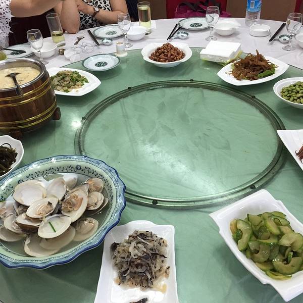 四点,公园出来大伙不想再玩了,出发去吃海鲜了这就是大名鼎鼎的蹲门王二酒楼酒楼边上的蹲门大饼店,可惜仅仅早上才做,无口福五点一刻准时开餐,冷盘上桌,看似平凡的小海鲜有着让人惊艳的味道。好吃!清水文蛤...