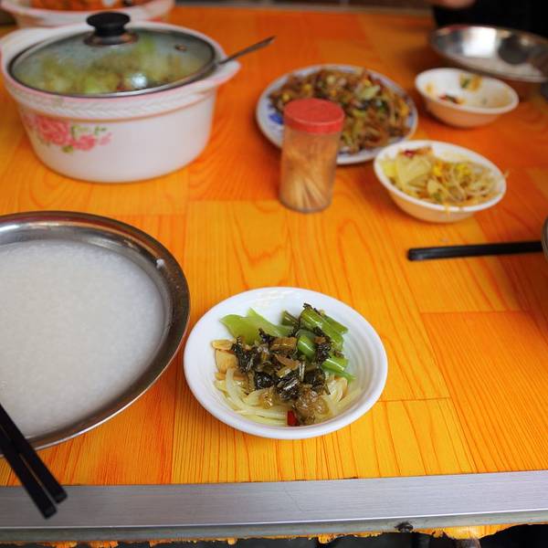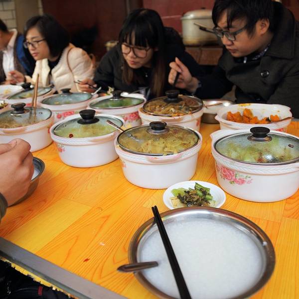 今天的早饭,继续八卦岭 一个个吃过来 小笼来一笼 脑海里浮现了 泉州 那个发僵掉发酸的小笼皮 低期望才会有惊喜 小笼还挺不错的 虽然没有什么汤汁 但是够实在,满满一笼,就是10个包子啊 我也惊叹,我吃完了这个,我还去喝了一大碗的粥。。。 实际上我一开始是看中配的蘸酱 有两款,一款是传统的甜辣 还有一款是青椒腌渍的类似剁椒酱 后来发现,在粉店里也是有类似味道的 包子馅儿很传统,木耳猪肉,葱提香,肥瘦正好吃完,应该是吃得快,所以还没怎么感受到饱 就去了粥铺坐下 那个点,好多人 他们是不上班咩。。。 节奏慢的生活真好 一碗白粥,十几个小菜 不知不觉就能和桌上的人打成一片 别看都是素的,却做出了不一样的风味 别看是下粥的小菜,却不是以咸来取胜的 酸笋的两种形式,片状的鲜,丝状的酸 藠头醒神的酸爽开胃 最爱的是我用来收尾的南瓜 葱油香包裹,里面粉糯鲜甜 有时候,家常菜才更见手艺,更了解当地的风情 边吃,大拨人走后,和老板老板娘聊了起来 是在这会儿,我像他们推荐了旅行用微单,他们给我解释了玉米糖水 能有这么多人来吃,当然实惠和味道都不能少