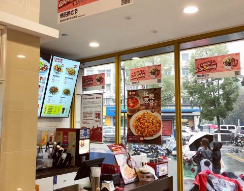 在苏果里面,位置有点偏,人挺少,环境一般,不过上菜速度很快。