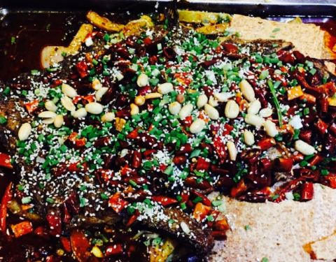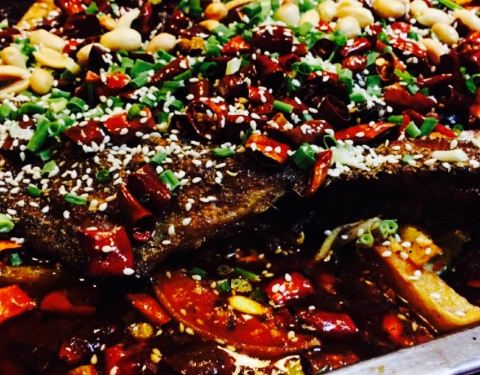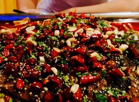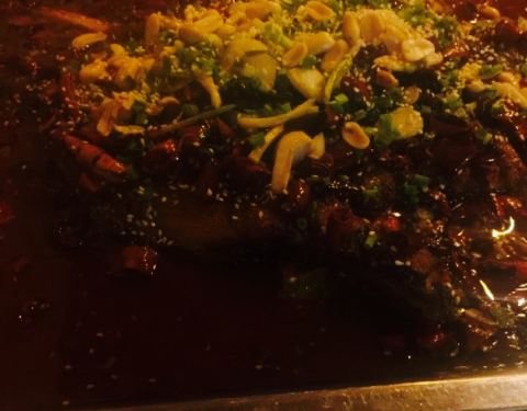 鱼肉烤的十分焦香,麻辣适中,麻味欠缺了点。不适合人多聚餐,只适合三两好友吃吃。我们点的是麻辣味的