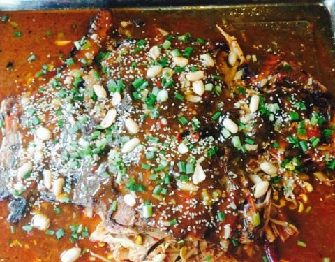 不入味,太咸了,皮是软软的,就是条红烧鱼,鱼皮和红烧的一下。根本没有皮脆肉嫩。都怀疑鱼是否换了,鱼肉一点也不嫩,非常的柴。喝了很多水,配菜要了豆芽腐竹 。千张皮,就吃了一口,太咸了。卖盐的不要钱是吧。多宝鱼也很多刺。服务员喊了都不理,点菜给菜单都要去找她,一群老油条。又难吃服务又不好,空调又热。不会再去。