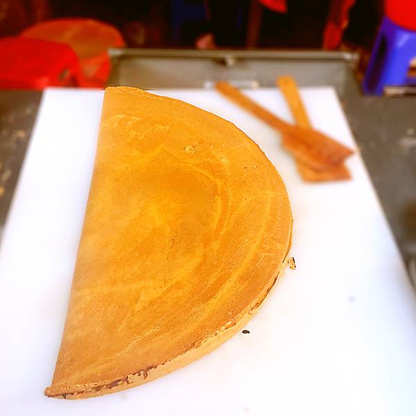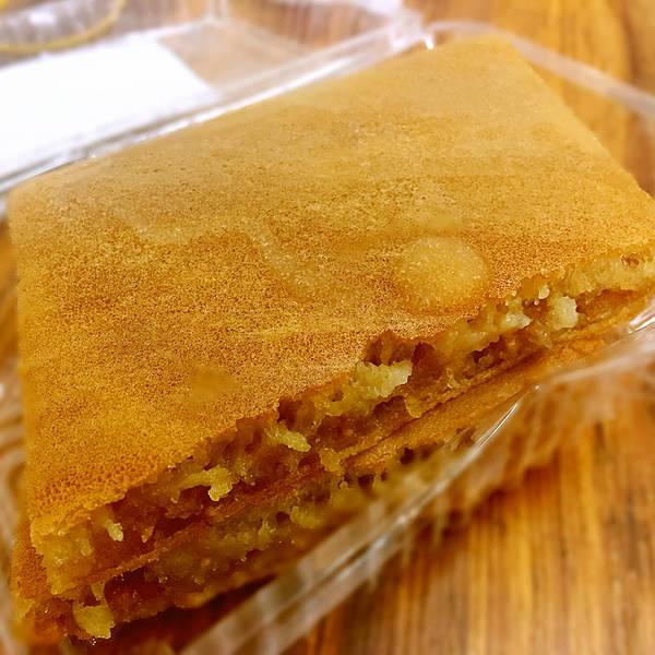 他家有两个店面对面。一边卖花生馅一边芝麻馅。最少就只能买一小块2.5元。 基本现到现买不用排队但是糕是热的! 很有特色的糕点中间似蜂窝。组织有点点像我们的黄金糕。刚出炉表皮还带点脆里面糯糯QQ的。很香呐。 夹馅是流心的!两个口味差不多我觉得花生的甜度低一些更喜欢。芝麻的真的是刚出炉的烫死我了。拍照都拿不住。但趁热吃的幸福感也是双重爆炸的。 怕甜的一定会觉得甜了。但这种甜食在我可以接受的范围之内。