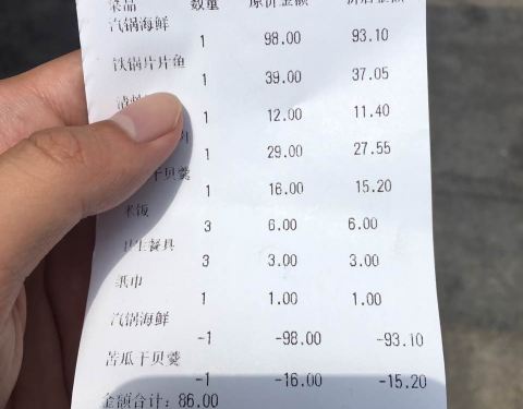 12.30分点的菜,就5道菜,第一道汽锅海鲜,15分钟才上来,结果里面的虾味道很臭,让服务员退了重做。空心菜炒的賊差,小炒肉就懒得吐槽了,片片鱼味道挺好的,唯一的亮点了,苦瓜羹等了50分钟都没上,无奈退货结账。整个消费体验,真是不能再差了。建议商家只要做鱼吧,其他菜真的别做了,上菜慢,又难吃,特别是那盘空心菜,没有拍下来。最后结账点了5道菜,退了2道,硬是米饭吃到饱了。