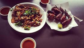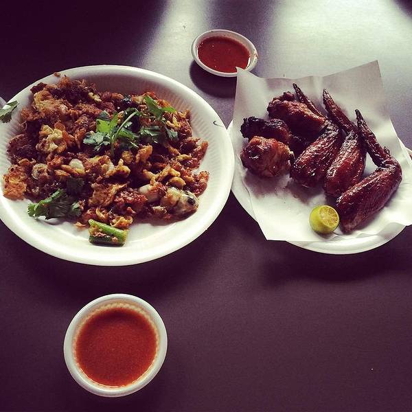 这个食阁必吃的美食之一,夫妇俩是第二代小贩,有55年历史的摊位,主打香脆的萝卜糕和王中王薄饼,萝卜糕是必点的有香脆萝卜糕和香甜萝卜糕两种,如果都想吃还有一种鸳鸯萝卜糕。我们点了5块钱中份的香脆萝卜糕,外皮颜色金黄,镬气十足 沙爹串也是必点菜式之一,沙爹在发光的红色木炭上烤制时,香气扑鼻而来,我最喜欢吃羊肉沙爹肉质口感刚刚好,牛肉会偏硬一些,烟熏和烤制的焦香感十足,如果不喜欢吃花生酱,蘸着烤鸡翅的酸辣酱也是非常好吃的 超级诱人的烤鸡翅,带点烟熏味道的蜜汁鸡翅,口感软糯入味,蘸上特制的酸辣酱汁,非常开胃 叁岜酱魔鬼鱼,同行的有一个小姐妹第一次吃魔鬼鱼,然后就欲罢不能了,魔鬼鱼其实就是魟鱼长得超Q的那种,吃起来很方便不会有刺,只有一些软骨,配上叁岜辣椒酱很香,也是必点菜式之一
