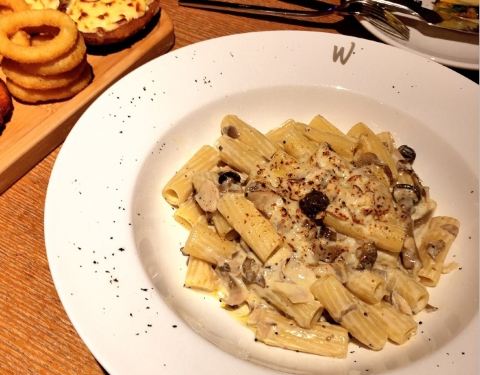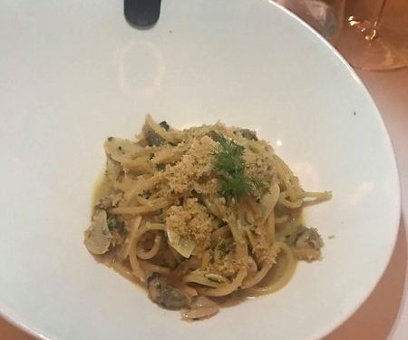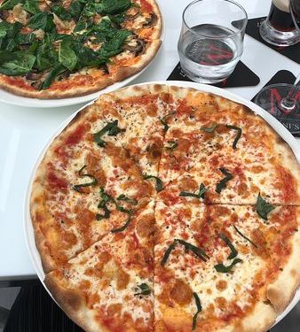 可以看到美丽的日落,还有双子塔,价格比双子塔用餐便宜,但是其实还是很贵的,好多客人点鱼子酱,享受不了那个口感还有价格,吃了比较亲民的披萨和意面,味道不错