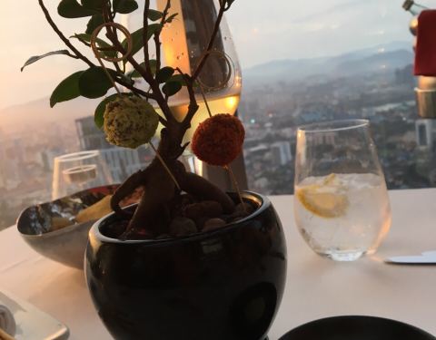 楼层刚好在57层,这是故意还是巧合?消费一次回血要好久啊,服务超级棒,一进去就看到一个高挑的顶,而且是透明的,视野很开阔,景色迷人的很,食物一点都没让人失望,一边用餐还可以享受一杯鸡尾酒,如果价格好些会更好。