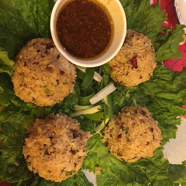 店面非常的喜庆,听说每家店都有自己的特色,有抗战风的等等。这家店确实有大年初一的感觉啊。[微笑][微笑][微笑][微笑][呲牙][呲牙] |锅包肉^酸甜可口,真宗东北锅包肉 |煎粘豆包^东北特色,有白的和黄的两种,...店面非常的喜庆,听说每家店都有自己的特色,有抗战风的等等。这家店确实有大年初一的感觉啊。[微笑][微笑][微笑][微笑][呲牙][呲牙] |锅包肉^酸甜可口,真宗东北锅包肉 |煎粘豆包^东北特色,有白的和黄的两种,里面馅儿是红豆沙,不是很甜。 |揭包卤水豆腐^现磨豆制成的豆腐,很香很嫩个,配着三种酱料吃,q弹可口。