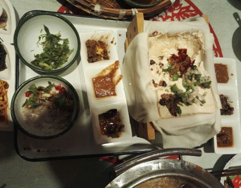 长春最近很火的一家餐厅,主打有机菜品,很多食材号称是直接从农民家收的,或者自产的。 不提前一天预订根本预订不到包房或者沙发座,小桌太挤了,凳子也不舒服,所以一定要提前预定。 从菜品和环境都有很浓郁的东北特色。 入座,送了小菜和果盘。 吊炉烧烤是他家特色,点了吊炉烤鸡爪、烤腰子、烤土豆、烤鹅蛋, 鸡爪有点咸了,其他都很好吃。土豆很甜,鹅蛋相当劲道。 热菜上点了米汤捞豆角丝、土豆干炖排骨和饭包,量都不小,米汤捞豆角丝泡饭很好吃,土豆干炖排骨里的土豆超级多,打包回家一大盒。这里的饭包很好吃,是拌好的,分成一份份的,用生菜包着吃,感觉这种场景都是小时候的事了。 很有复古感觉,喝水的杯子都是小时候的陶瓷缸。 菜价看着不低,但是因为量大,所以人均一个菜也就够了,吃着还是很舒服的。 服务也很热情,服务员会提醒菜品是否够吃了。
