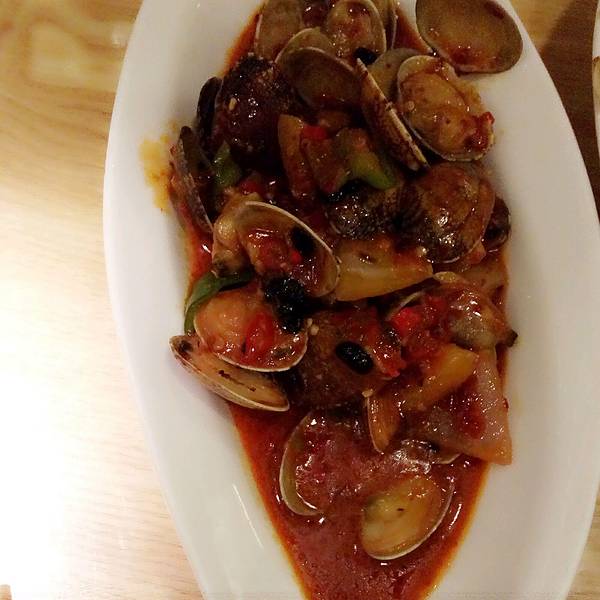 【菜品推荐】我们点了三个热菜,两个甜品,一个蒸菜,总体而言,都很满意,三杯鸡翅中(图一)是网上推荐的菜品,不到50一份,给的肉还算挺多的,里面的长的很像土豆的不是土豆,是大姜,第二个热菜是泰式辣椒豪花甲(好像是26),出乎意料,很对我们的口味,香辣系,汁浓,很好下饭,第三个是手撕包菜(9块),很便宜,但是里面还有肉,很像酱爆圆白菜的味道,也不错,然后是鸭爪,是看了菜单推荐的,味道可以的,剩下两个甜品也都很满意,一个是菠萝油(8块),黄油先是呈在冰块碗里的,防止融化,吃的时候戴手套,把面包打开,将黄油放进去,夹在一起吃,面包和黄油的味道混合在一起,很美好的感觉,第二个是焦糖蒸蛋,卖相很好看,上面还有草莓和蓝莓,外面是一层脆脆的焦糖