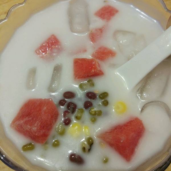 - ...我们信了 不过该尝试的还是要尝试嘛 我的口味反正是这样的 清凉补很好噢 椰奶加西瓜椰果红豆绿豆