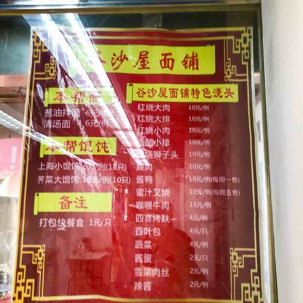 谷沙屋面铺老店动迁了,新店在虬江路格林联盟酒店旁边,比过去大了也更干净整洁了。下午过了饭点去的,人不多,不用排队。收银机点单,窗口排队拿面。味道还是那么好,面有劲道,浇头量十足,狮子头,辣肉,红烧...谷沙屋面铺老店动迁了,新店在虬江路格林联盟酒店旁边,比过去大了也更干净整洁了。下午过了饭点去的,人不多,不用排队。收银机点单,窗口排队拿面。味道还是那么好,面有劲道,浇头量十足,狮子头,辣肉,红烧肉,糖醋排骨都喜欢。