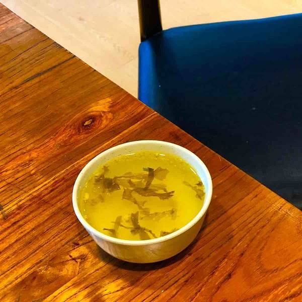 送的咖喱汤淡而无味,但面吃到一半就会发现它的好,两个字——解腻。