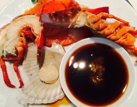 说这是宁波最好的餐厅真的一点都不为过吧?!走进酒店会见到一个无边水池,打开门,真的以为自己在东南亚度假呢。餐厅环境也很好!记得提前一天团购呀!我们去的时候被告知需要提前一天团购才能享受优惠价,所以只能花全价去吃了。海鲜很多,龙虾大螃蟹都有。不过我们反倒觉得北京烤鸭最好吃,哈哈哈。餐厅室外还有烤炉,现烤海鲜,有我最爱吃的烤扇贝和烤三文鱼,特别香,喜欢!餐厅每人送一杯酒(香槟气泡或是红酒),再要一杯酒要钱了。不过也有免费的啤酒(喜力)和饮料,我要了冰咖啡,真的太懂我了,别的酒店都上热咖啡,这家直接上冰咖啡。哈哈哈哈。很棒的体验!最后,要感谢王总小憧憧来宁波探望苦逼的我!