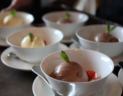 柏悦酒店面朝东钱湖,在欣赏沿途的风景之余,别忘记来享受一下酒店的美食。古香古色的建筑、依山傍水的就餐环境,不愧对五星酒店的评级。看着窗外的风景,晴空无云、碧水蓝天,吃什么都心情舒畅。当然这里的美食也不负众望,天然的地理环境优势使得柏悦有新鲜的海鲜和湖鲜,唤醒夏季昏昏欲睡的味蕾。也有各种中西式点心、冰淇淋、蛋糕、甜品、沙拉等,五星菜品、五星服务。
