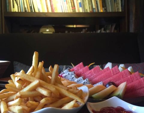 - 好友超级喜欢这里炸的薯条,香!淡淡的音乐,清香的龙井,呢喃的低语……弥漫着惬意