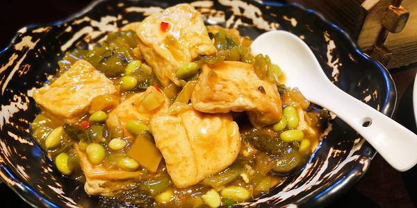 简单的素材在这里可以化腐朽为神奇 都是平时在菜市场或餐桌上能见到的家常菜但在大厨的料理下却变得不再普通 味道很赞的说 福果支竹浸时蔬 黑松露炒饭 双色豆腐 芹菜木耳 芋丝饼都让人回味无穷 清新淡雅的口感 非常适合素食者
