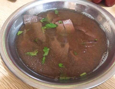 听说来翔安一定要试试翔寅小吃店的招牌芋包,每天手工现打。点了份芋包,第一面相感觉不是太好,油渍渍的,芋泥也是紫到发黑,里面包了N多种配料,口感又糯又硬,主要还是太油了,目前吃过比较不好吃的芋包了。 另外点了份店内招牌汤品,肉蓉汤,肉蓉很大一颗,肥瘦比例均匀,入口嫩滑,香中带着微微的甜味,这道汤品倒是值得一喝。