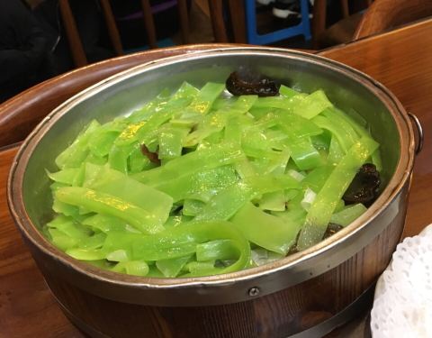 江城小馆陕南妈妈菜也是西安美食打卡点之一,所以八点多了还要在等位,在西安只要有特色的美食都是人满为患。因为太晚了,很多特色的菜都没有了,只能临时换其它菜,后点的石头煎蛋真的很特别,是现场在高温的石头当场煮熟,特别嫩滑。这里每样菜的份量都特别大,菜点多了,三个人吃不完。