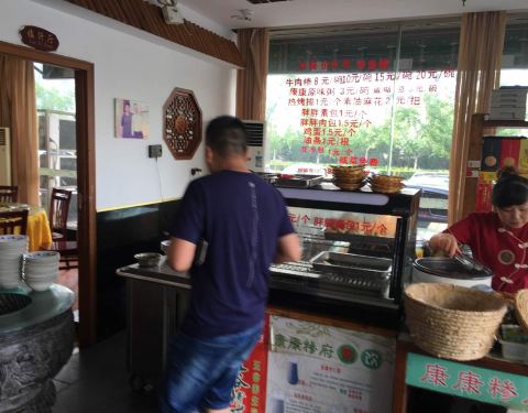 从上海来到临沂。家里人就带我到这里来吃临沂的特色菜~糁!这家饭店还有许多包裹在煎饼,和馒头里的各种各样的菜,真是非常好吃。