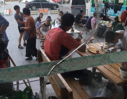 这家饭店还有许多包裹在煎饼,和馒头里的各种各样的菜,真是非常好吃。家里人就带我到这里来吃临沂的特色菜