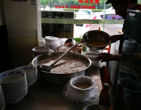 楼下的,品牌店,早上走有最低5元一碗。全天都有。10点以后最低10元。烤牌和馓子配着最好。