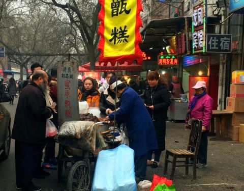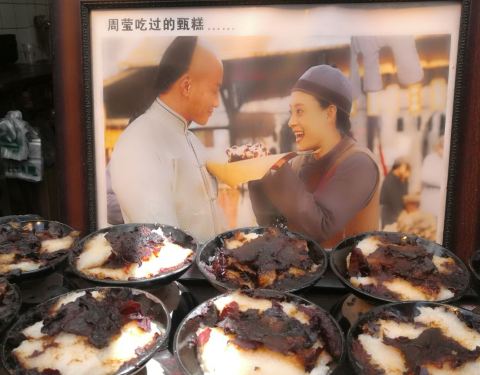 提供蜜枣甑糕的小吃摊,糯米绵密香甜。