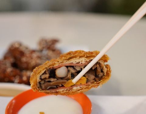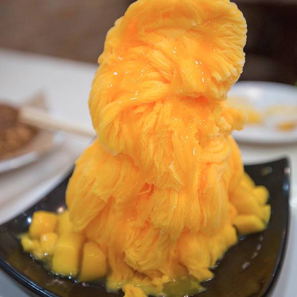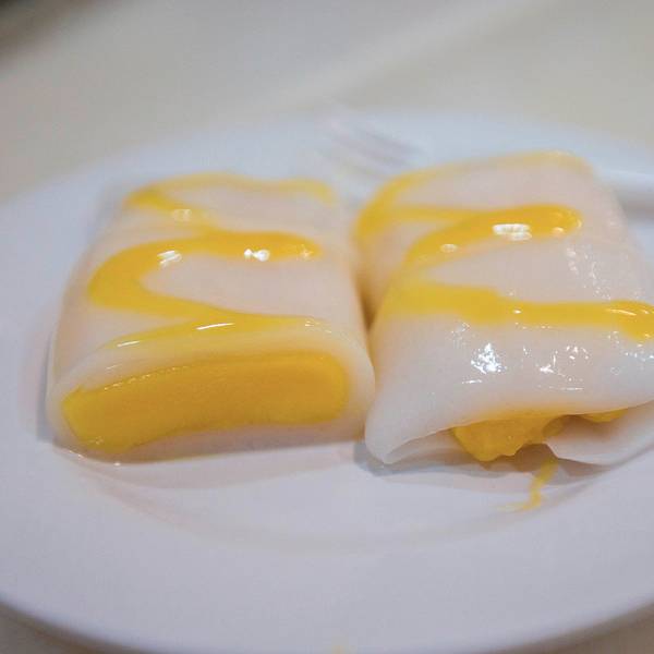 中峇鲁起骨海南鸡饭的后面一条街有一家当地华人都比较喜欢的甜品店,正好路过就尝尝。甜品种类很多,不过已经吃饱了兴趣不大。还是这个看起来更带劲,各种口味的雪花冰,30多度的气温就看这个亲。已经挑的眼花缭乱了,最后选定了个芒果的。大壳儿点的芒果卷味道好极啦,不凉适合宝宝。里面是一大块芒果肉,外面是Q弹的薄皮,很推荐。这个最带劲,量很大,两个人吃足足的。糯米鸡点的有点失败了,前面都是冰品,突然来了个热的,失败了。