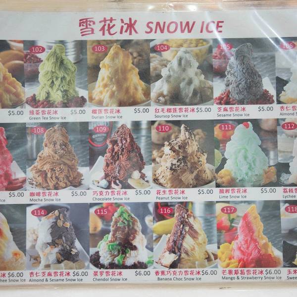 中峇鲁起骨海南鸡饭的后面一条街有一家当地华人都比较喜欢的甜品店,正好路过就尝尝。甜品种类很多,不过已经吃饱了兴趣不大。还是这个看起来更带劲,各种口味的雪花冰,30多度的气温就看这个亲。已经挑的眼花缭...中峇鲁起骨海南鸡饭的后面一条街有一家当地华人都比较喜欢的甜品店,正好路过就尝尝。甜品种类很多,不过已经吃饱了兴趣不大。还是这个看起来更带劲,各种口味的雪花冰,30多度的气温就看这个亲。已经挑的眼花缭乱了,最后选定了个芒果的。大壳儿点的芒果卷味道好极啦,不凉适合宝宝。里面是一大块芒果肉,外面是Q弹的薄皮,很推荐。这个最带劲,量很大,两个人吃足足的。糯米鸡点的有点失败了,前面都是冰品,突然来了个热的,失败了。
