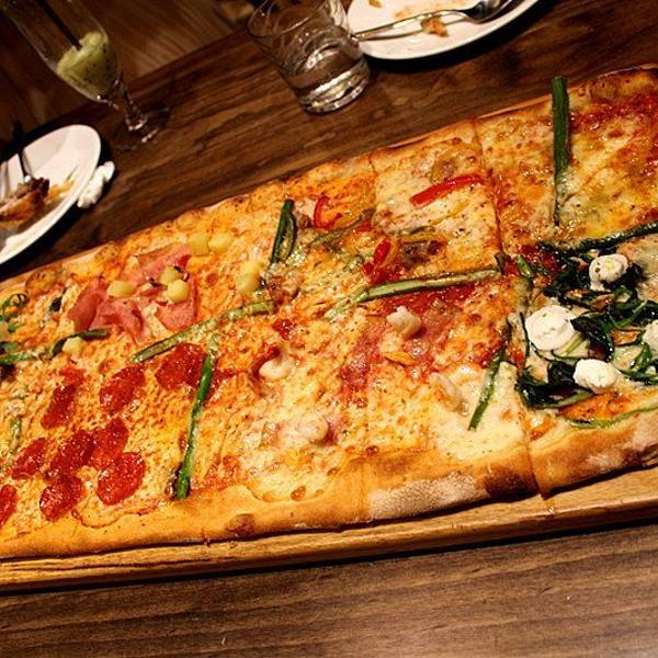 朋友团购的代金券 来了看到门口招牌 周一招牌披萨半价 周二来的妹纸表示不淡定了 招牌披萨等了差不多半小时 端上来的时候占了桌子一大半 8种口味 大家互相分分尝尝 吃的不亦乐乎 薄底披萨饼皮脆脆的 cheese量也...